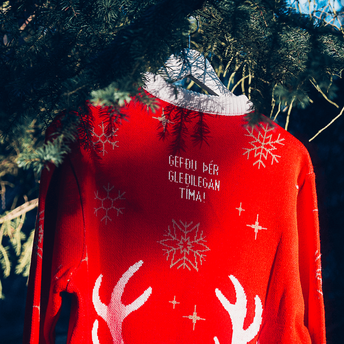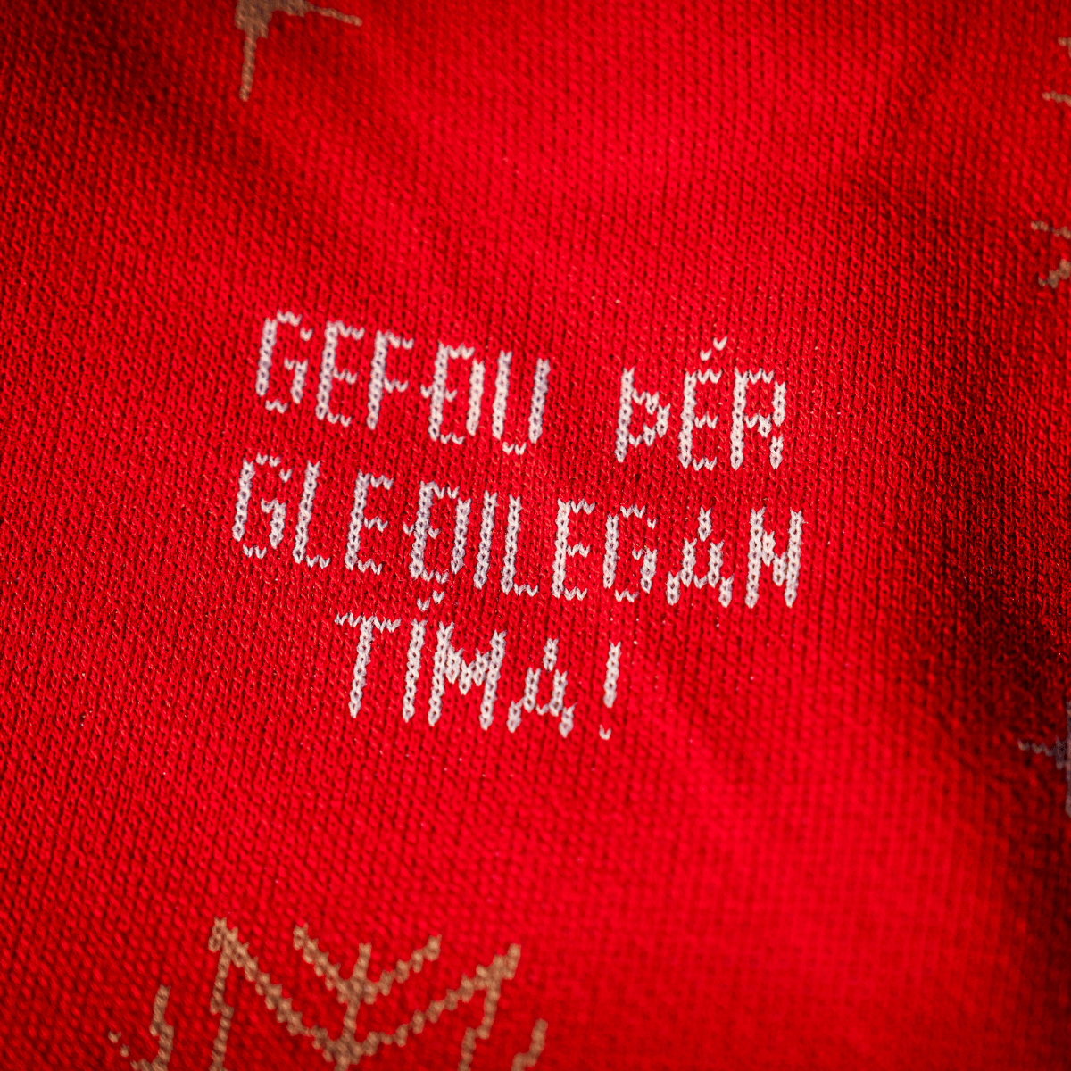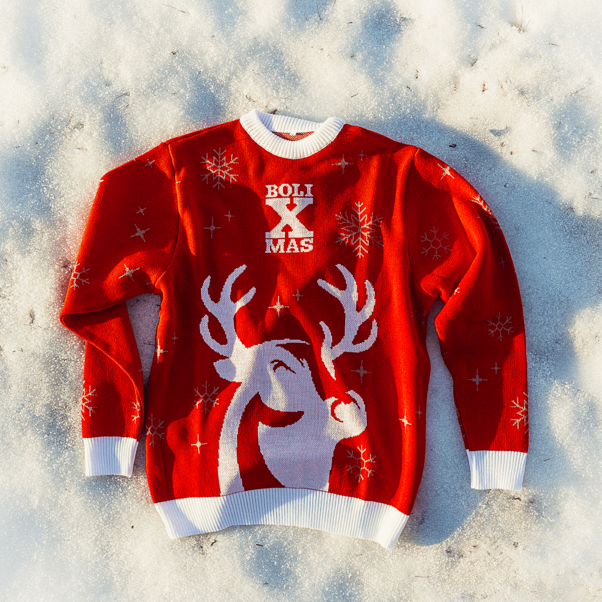 BOLAPEYSAN er Xtra jólaleg í ár, með hátíðaráletrun og gleðilegu mynstri.